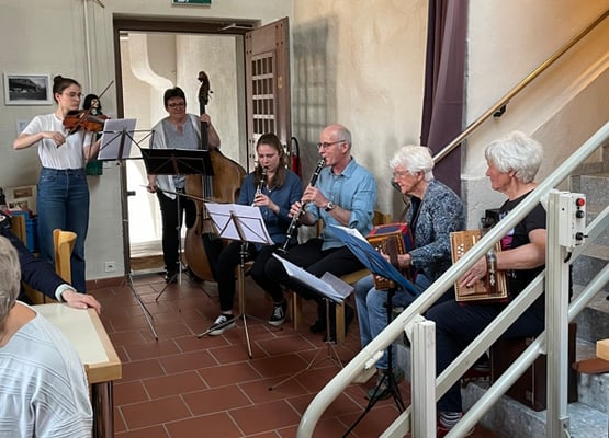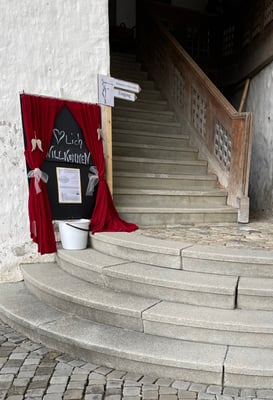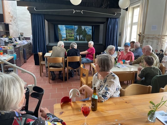 Mit viel Sorgfalt und Einsatz haben wir unser Schlosskaffee für Freunde und Bekannte eingerichtet. Am Samstag trafen dann doch ein paar Besucher ein, zum Plaudern, zum Spielen, zu Kaffee und Kuchen und zu spannenden Erzählungen vom Lokalhistoriker Hans Minder. Er berichtete uns von den Begebenheiten früherer Zeiten und von Grafen und Vögten.